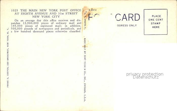 71990972 New York City Main Post Office Eight Avenue postalisch nicht gelaufen Erhaltung siehe scans KatCode: 14140340000000