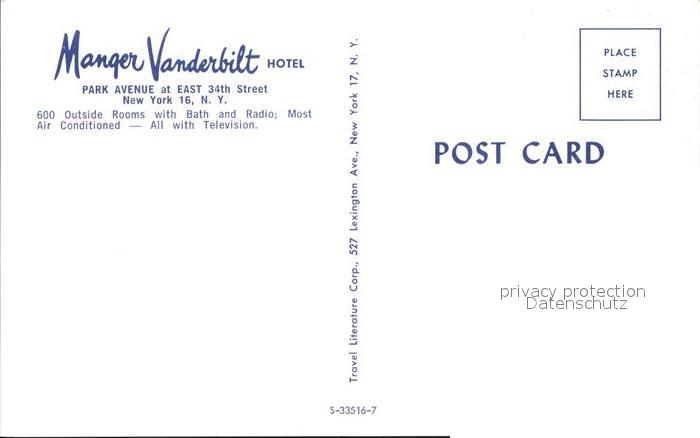 72376958 New York City Manger Vanderbilt Hotel postalisch nicht gelaufen Erhaltung siehe scans KatCode: 14140340000000