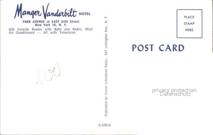 11686264 New York City Manger Vanderbilt Hotel Park Avenue Autos postalisch nicht gelaufen Erhaltung siehe scans KatCode: 14140340000000