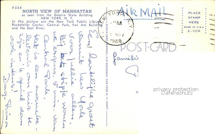 72291531 old postcard New York City Manhattan postalisch gelaufen Erhaltung siehe scans KatCode: 14140340000000