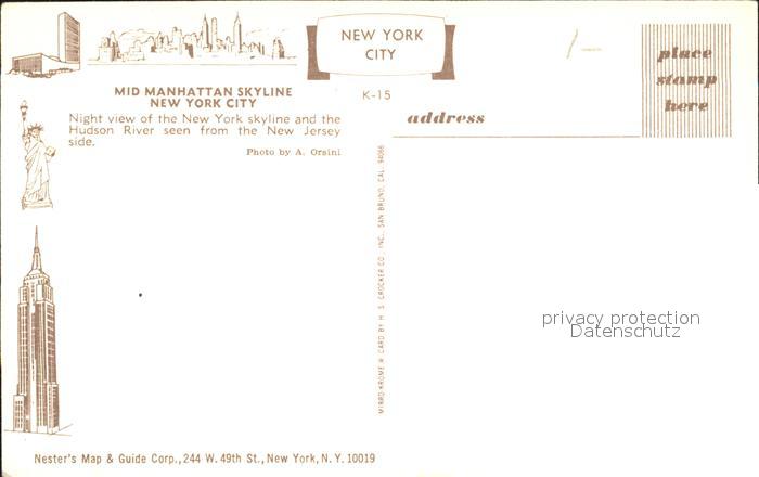 72285202 New York City Manhattan Skyline at night postalisch nicht gelaufen Erhaltung siehe scans KatCode: 14140340000000