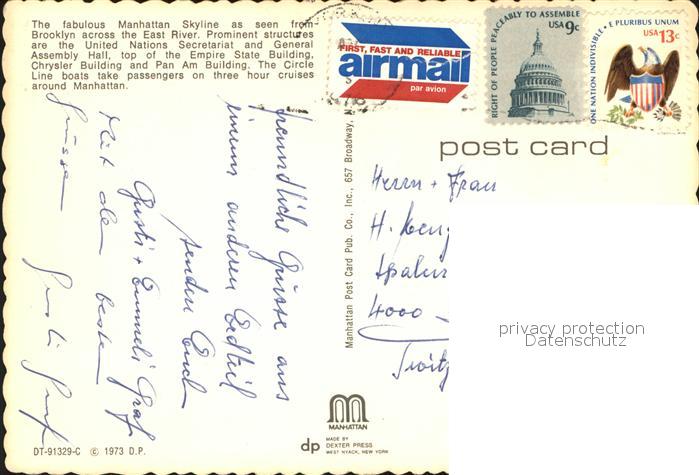 71668976 old postcard New York City Manhatten Skyline seen from Brooklyn postalisch gelaufen Erhaltung siehe scans KatCode: 14140340000000