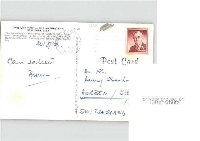 71567910 old postcard New York City Mannhattan Twilight Time postalisch gelaufen Erhaltung siehe scans KatCode: 14140340000000