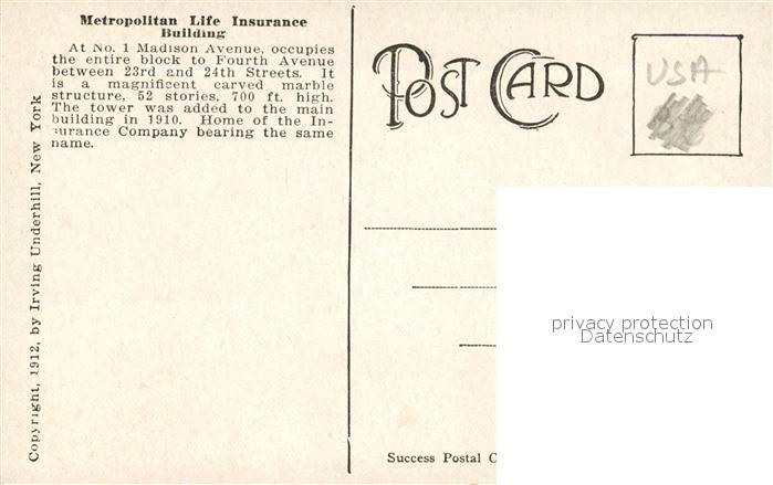 73588824 New York City Metropolitan Life Insurance Building postalisch nicht gelaufen Erhaltung siehe scans [FriedD77] KatCode: 14140340000000