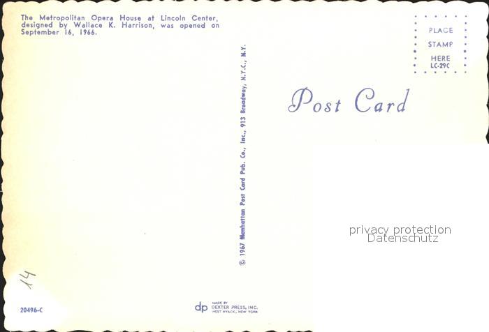 72279664 New York City Metropolitan Opera House at Lincoln Center postalisch nicht gelaufen Erhaltung siehe scans KatCode: 14140340000000