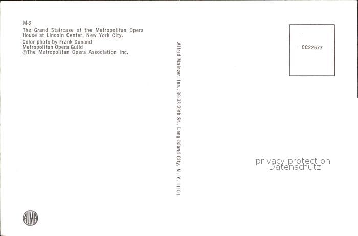 72279693 New York City Metropolitan Opera House Staircase postalisch nicht gelaufen Erhaltung siehe scans KatCode: 14140340000000