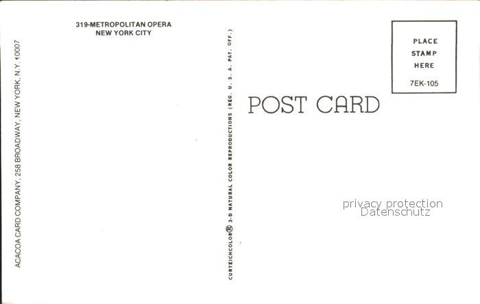71969242 New York City Metropolitan Opera postalisch nicht gelaufen Erhaltung siehe scans KatCode: 14140340000000