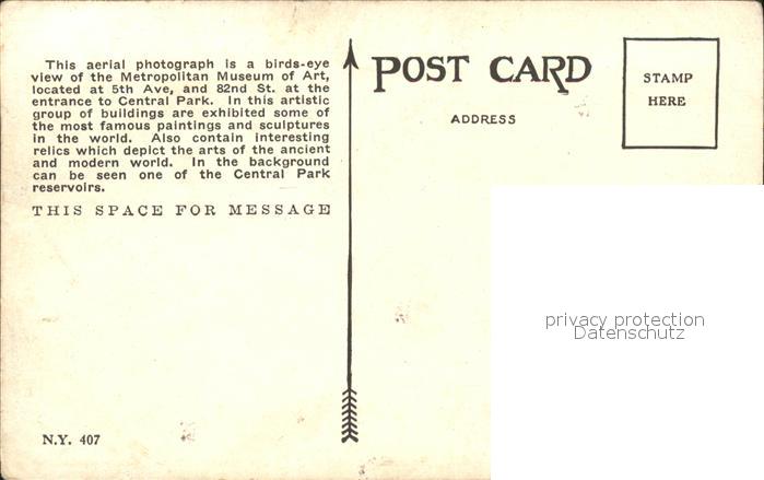 71911714 New York City Metropoliten Museum Art Fliegeraufnahme postalisch nicht gelaufen Erhaltung siehe scans KatCode: 14140340000000
