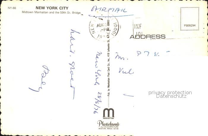 72505399 old postcard New York City Midtown Manhattan and the 59th Saint Bridge postalisch gelaufen Erhaltung siehe scans KatCode: 14140340000000