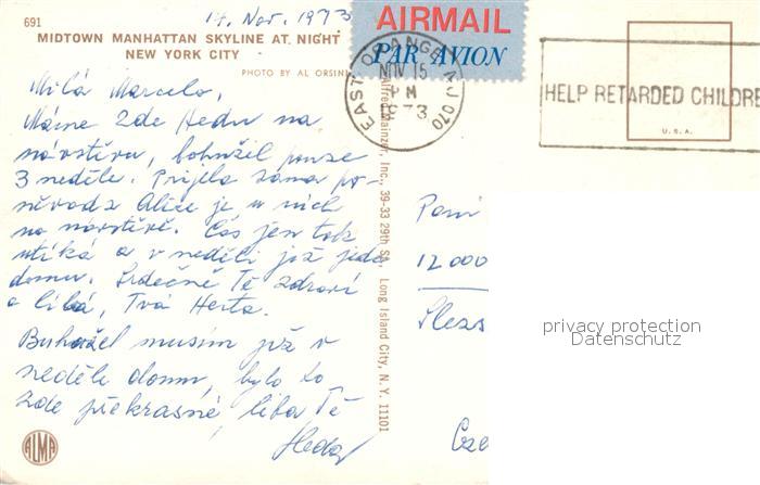 73061575 old postcard New York City Midtown Manhattan Skyline at night postalisch gelaufen Erhaltung siehe scans [WerneD78] KatCode: 14140340000000