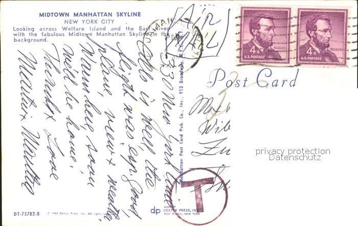 11688519 old postcard New York City Midtown Manhattan Skyline Welfare Island East River postalisch gelaufen Erhaltung siehe scans KatCode: 14140340000000