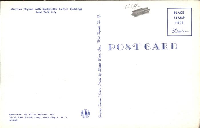 11491709 New York City Midtown Skyline with Rockefeller Center Buildings Manhatten postalisch nicht gelaufen Erhaltung siehe scans KatCode: 14140340000000