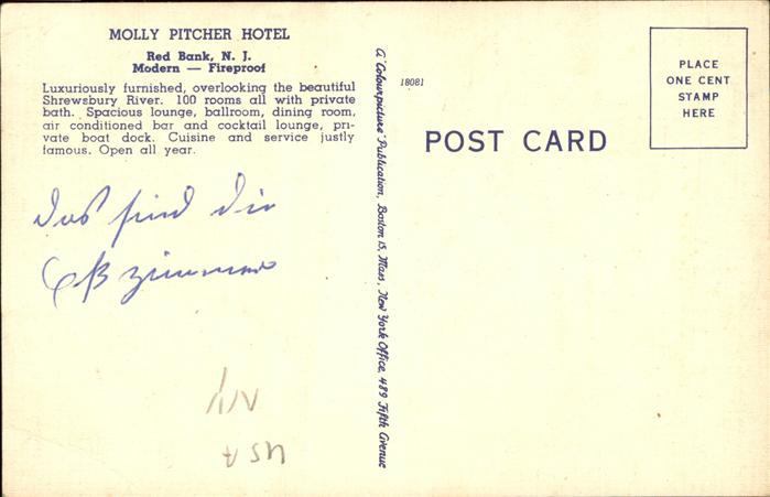 11268686 New York City Molly Pitscher Hotel Red Bank Bar Restaurant postalisch nicht gelaufen gute Erhaltung KatCode: 14140340000000