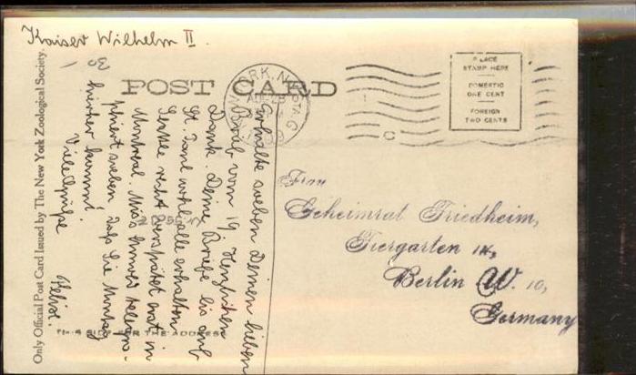 11032205 old postcard New York City Monkey House Zoological Park postalisch gelaufen KatCode: 14140340000000