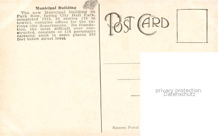 73588822 New York City Municipal Building Illustration postalisch nicht gelaufen Erhaltung siehe scans [FriedD77] KatCode: 14140340000000