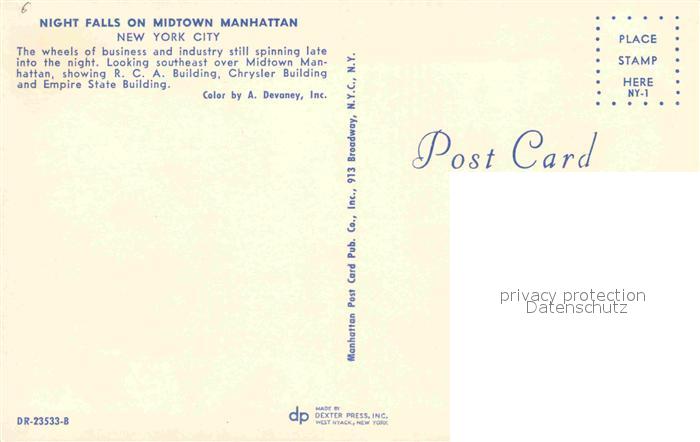 72780038 New York City Night Falls on Midtown Manhattan postalisch nicht gelaufen Erhaltung siehe scans [LiesaD40] KatCode: 14140340000000