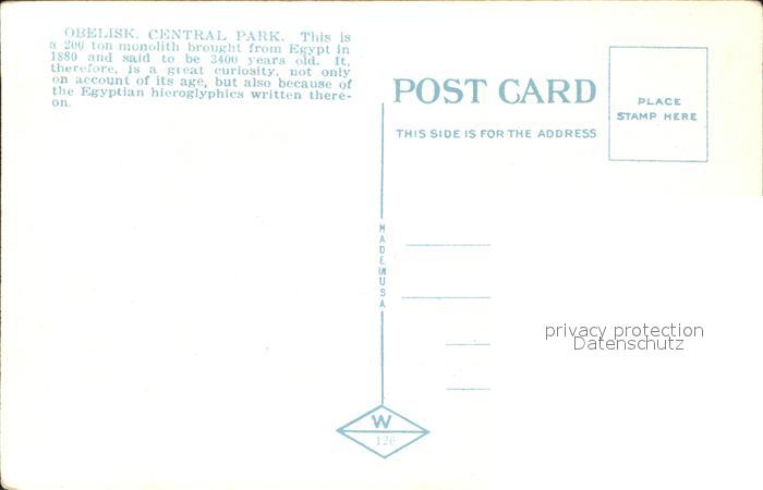 11688399 New York City Obelisk Central Park postalisch nicht gelaufen KatCode: 14140340000000