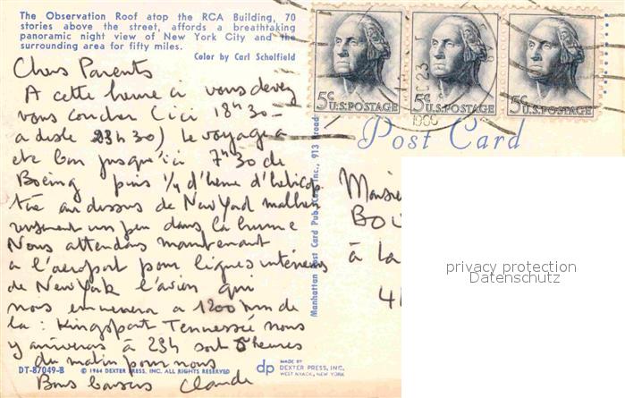 72743800 old postcard New York City Observation Roof atop the RCA Building postalisch gelaufen Erhaltung siehe scans [LiesaD40] KatCode: 14140340000000