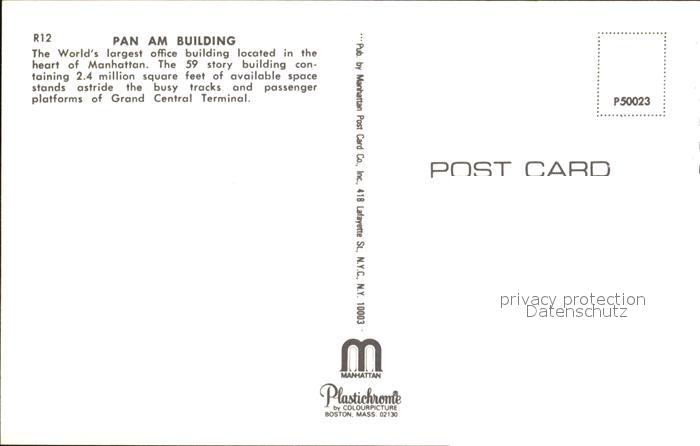 72467494 New York City Pan-Am-Building Manhatton postalisch nicht gelaufen Erhaltung siehe scans KatCode: 14140340000000
