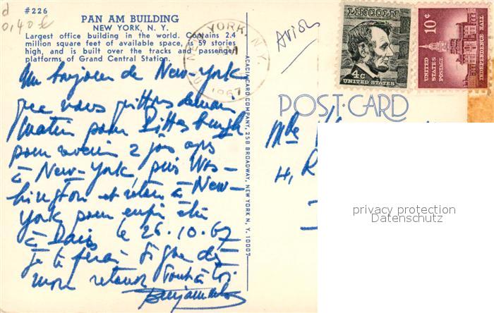 73123630 old postcard New York City Pan Am Building Skyscraper postalisch gelaufen Erhaltung siehe scans [FriedD77] KatCode: 14140340000000