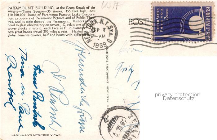 73162614 old postcard New York City Paramount Building postalisch gelaufen Erhaltung siehe scans [KathaD81] KatCode: 14140340000000