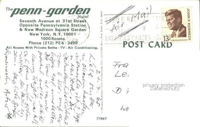 71954710 New York City Penn Garden Hotel postalisch nicht gelaufen Erhaltung siehe scans KatCode: 14140340000000