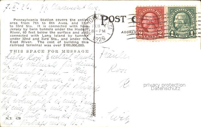 11686220 old postcard New York City Pennsylvania Station Bus Autos postalisch gelaufen KatCode: 14140340000000