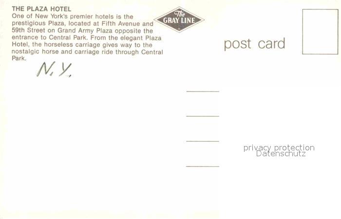 72875166 New York City Plaza Hotel Pferdedroschken postalisch nicht gelaufen Erhaltung siehe scans [FriedD77] KatCode: 14140340000000