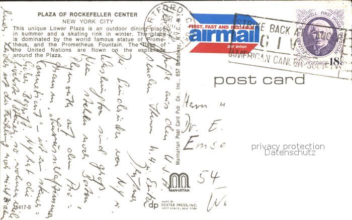 11693295 old postcard New York City Plaza of Rockefeller Center postalisch gelaufen Erhaltung siehe scans KatCode: 14140340000000