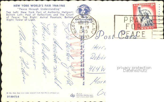 71967528 old postcard New York City Port Authority Heliport Pool Reflections Court Peace Astral Fountain postalisch gelaufen Erhaltung siehe scans KatCode: 14140340000000