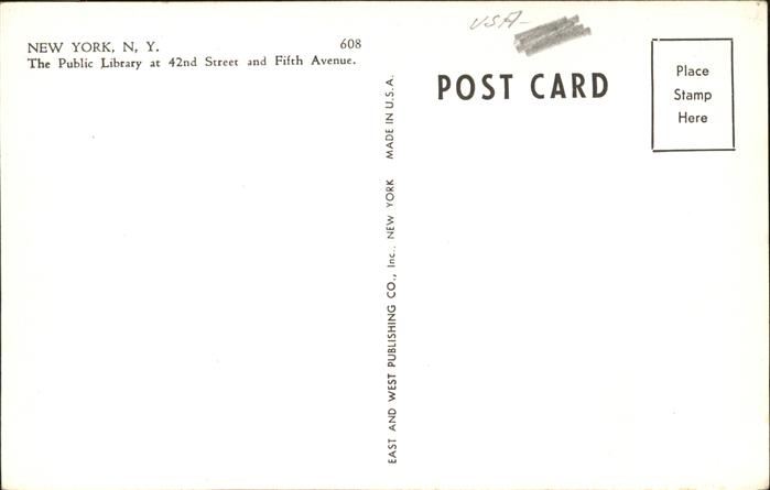 11491698 New York City Public Library Fifth Avenue postalisch nicht gelaufen Erhaltung siehe scans KatCode: 14140340000000