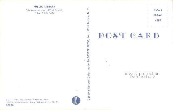 11686123 New York City Public Lirbrary 5th Avenue 42nd Street Autos postalisch nicht gelaufen Erhaltung siehe scans KatCode: 14140340000000