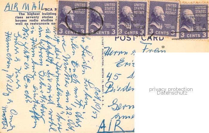 73763075 old postcard New York City R.C.A. Building Rockefeller Center postalisch gelaufen Erhaltung siehe scans [LiesaD40] KatCode: 14140340000000