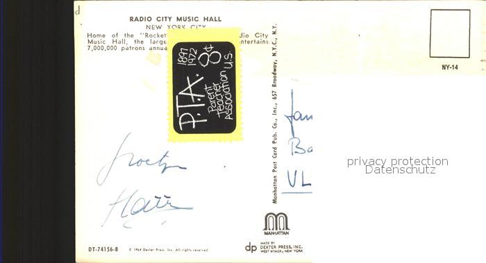 72320047 old postcard New York City Radio City Music Hall postalisch gelaufen Erhaltung siehe scans KatCode: 14140340000000