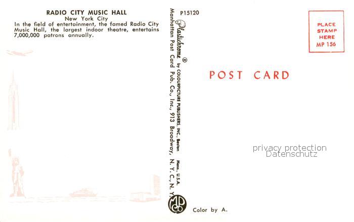 73700777 New York City Radio City Music Hall postalisch nicht gelaufen Erhaltung siehe scans [WerneD78] KatCode: 14140340000000