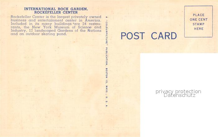 73588810 New York City Rockefeller Center Garden Illustration postalisch nicht gelaufen Erhaltung siehe scans [FriedD77] KatCode: 14140340000000