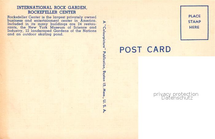 73588798 New York City Rockefeller Center International Rock Garden Gardens of the Nations Illustration postalisch nicht gelaufen Erhaltung siehe scans [FriedD77] KatCode: 14140340000000