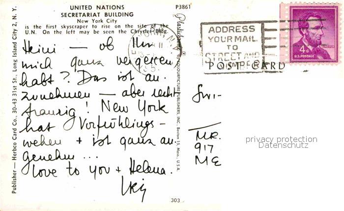 72763580 old postcard New York City Secretatiat Building postalisch gelaufen Erhaltung siehe scans [LiesaD40] KatCode: 14140340000000