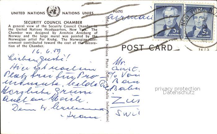 11686127 old postcard New York City Security Council Chamber United Nations postalisch gelaufen Erhaltung siehe scans KatCode: 14140340000000