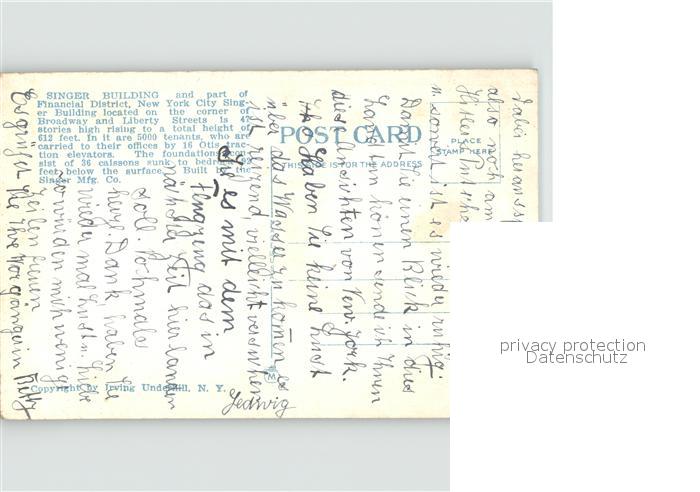 71940625 New York City Singer Building postalisch nicht gelaufen Erhaltung siehe scans KatCode: 14140340000000