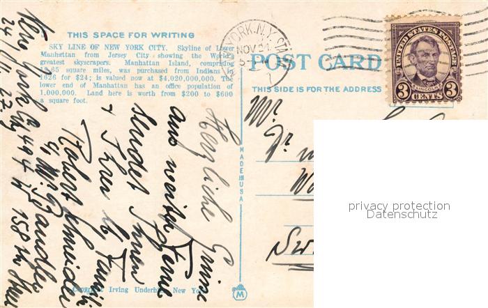 73318251 old postcard New York City Skyline postalisch gelaufen Erhaltung siehe scans [KathaD81] KatCode: 14140340000000