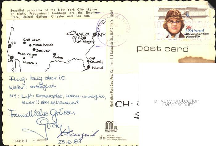 72556496 old postcard New York City Skyline at night postalisch gelaufen Erhaltung siehe scans [AndreD76] KatCode: 14140340000000
