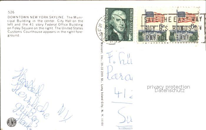 11688574 old postcard New York City Skyline Downtown Municipal Building City Hall Customs Courthouse postalisch gelaufen Erhaltung siehe scans KatCode: 14140340000000