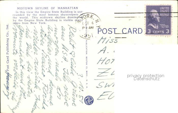 11686238 old postcard New York City Skyline Empire Stat Building postalisch gelaufen Erhaltung siehe scans KatCode: 14140340000000