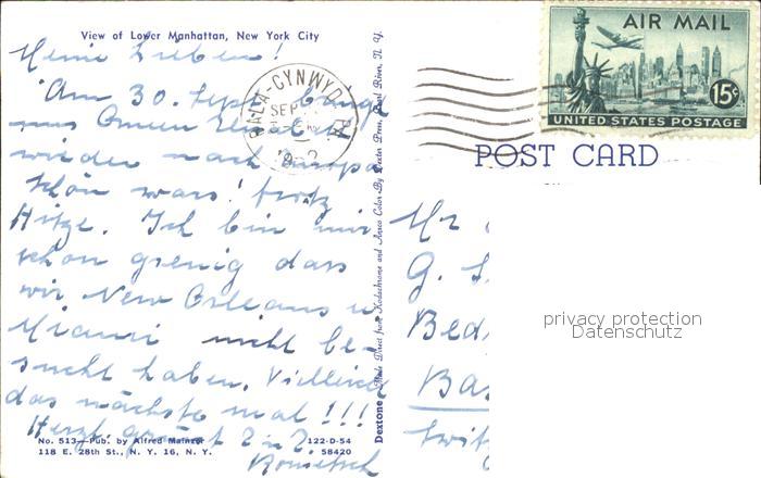 11686182 old postcard New York City Skyline Lower Manhattan postalisch gelaufen Erhaltung siehe scans KatCode: 14140340000000
