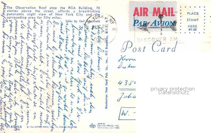 72868697 old postcard New York City Skyline Observation Roof RCA Building postalisch gelaufen Erhaltung siehe scans [LiesaD40] KatCode: 14140340000000