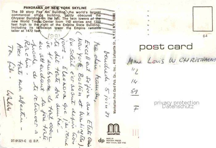 72615453 old postcard New York City Skyline Panorama postalisch gelaufen Erhaltung siehe scans [WerneD78] KatCode: 14140340000000