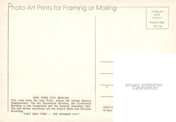 73590437 New York City Skyline view from the East River United Nations Headquarters General Assembly Hall Empire State Building Chrysler Buildings postalisch nicht gelaufen Erhaltung siehe scans [FriedD77] KatCode: 14140340000000