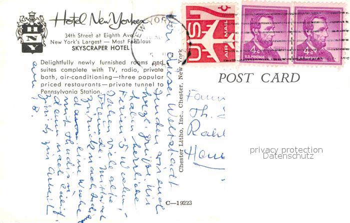 72821088 old postcard New York City Skyscarper Hotel postalisch gelaufen Erhaltung siehe scans [AndreD76] KatCode: 14140340000000