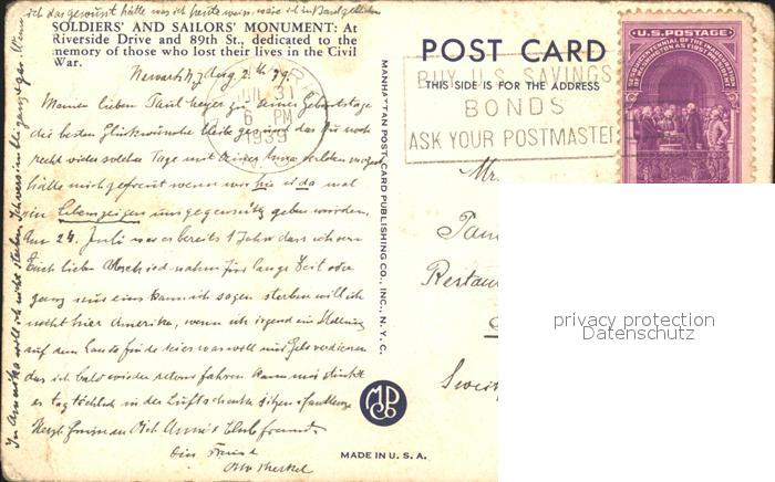 11693864 old postcard New York City Soldiers und Sailors Monument on Riverside Drive postalisch gelaufen Erhaltung siehe scans KatCode: 14140340000000